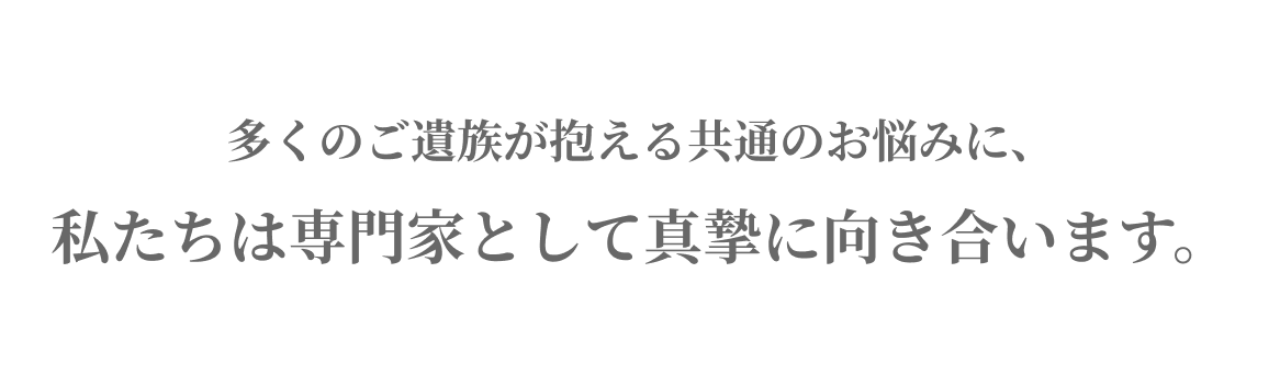 故人への敬意を込めて 形見分けサポート、遺品の共同供養手配、作業前の故人への黙祷など、故人への敬意を込めた丁寧な対応を徹底しています。